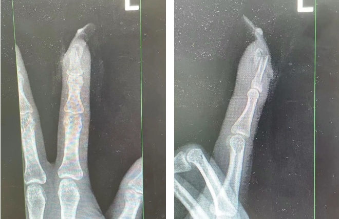 ▲王女士受伤手指的X光影像。来源:杭州市临平区中西医结合医院