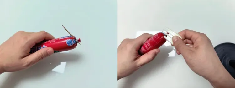 在铝环下方的肠衣上戳穿一个洞
